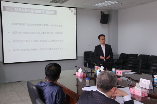 学位办负责人在评审会上向专家组介绍了我校本次动态调整增列工商管理硕士专业学位授权点的评审要求。商学院汇报了关于增列工商管理硕士专业学位授权点的专项报告。