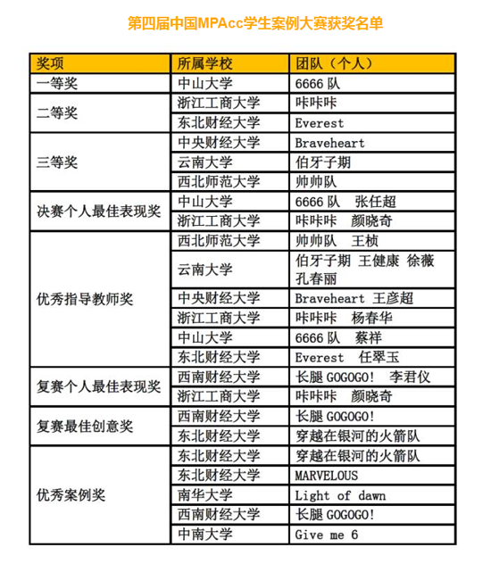 据悉,中国MPAcc学生案例大赛是由北京交通大学、东北财经大学、湖南大学、暨南大学、上海财经大学、西安交通大学、西南财经大学、厦门大学、中国人民大学、中南财经政法大学、中山大学、中央财经大学12所高校联合发起组织的全国性赛事,是目前国内会计专业硕士教育领域最具权威性的赛事,旨在通过组织参赛者亲历企业实践、模拟管理决策、比拼解决方案、培养学员发现、分析、解决问题的能力。