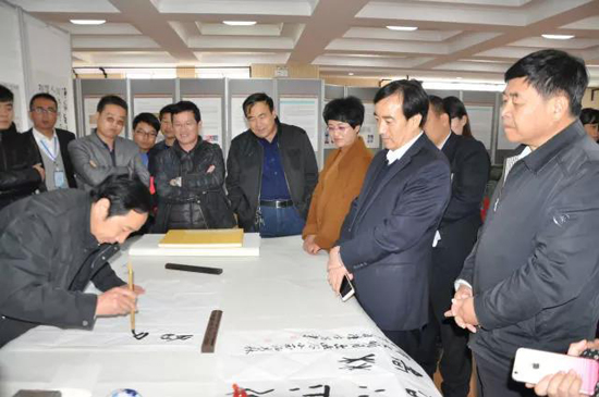 与会人员和临洮县各界人士在中国文字博物馆解说员的引导下参观了中国文字展、结晶——中国当代书画名家精品展、中华国宝•青铜器展、文字文化创意产品展等主题展览,体验了甲骨文十二生肖雕版印刷互动等项目。