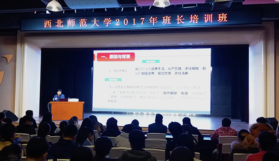 本次新修订的6项学生管理相关规章制度已于2017年10月印发。为了做好制度的宣传工作,党委学生工作部专门召开了学生工作队伍学习培训会,利用“两微一端”等新媒体宣传,开辟专题专栏专版实现网上网下全覆盖。西北师大于11月2日启动了学生骨干培训班,本次培训班主要由全校473名班班长、473名团支书、310名楼层楼宇互助发展引导员和80名青年马克思主义者学生骨干以及各学院专兼职辅导员组成,利用周末,举办为期1个月的培训。此次培训班的举办一方面是为了加强学生骨干的理论学习和政策水平,另一方面旨在宣传学生教育管理的各项制度,做到全员知晓,全员覆盖,全员践行。同时,学校要求各学院对新制度的宣传和学习进行全面的督导,做到每个宿舍、每个班级、每个年级全覆盖,对学生的遇到的问题进行答疑解惑,创新学习辅导形式,巩固新规学习成果,做到全员入脑入心。