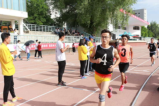 在男子5000米决赛中,物理与电子工程学院的戴鹏武同学以绝对领先的优势获得了该项目的冠军。