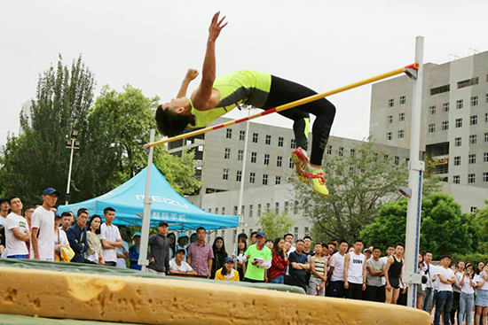 腾飞、空中划过一个完美的弧形。在学生女子丙组跳远决赛中,物理与电子信息工程学院的石明以3.92的成绩脱颖而出。石明是研一的学生,本科时就非常喜欢体育运动,参加过跳远、跳高、三级跳、长跑、四百米栏比赛项目和各类团体项目;也曾被选拔进入赛前学校冬训、春训,接受过体校的教练的分项目训练。