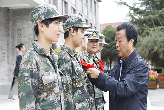 “此刻我心怀羡慕、内心激荡地送走了学长学姐。明年的此刻,我也将会努力走进心中神圣无比的军营。国家的稳定、和平需要一群人的默默付出,我愿化作一粒石子,为祖国的宏伟大业献上自己坚实的力量。”经济学院新生苏扬说。