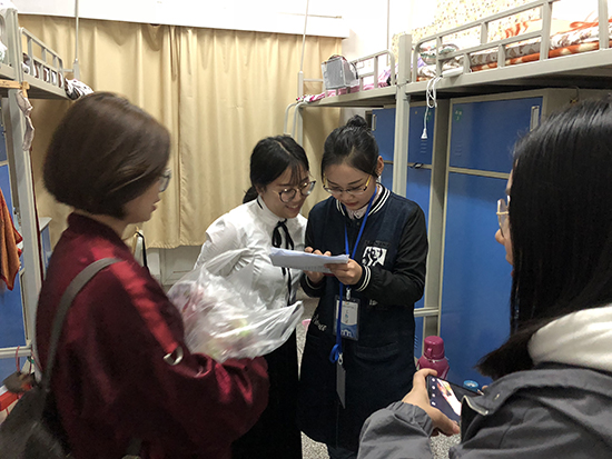 心理学院2018级硕士研究生王瑾对学校组织师兄师姐到公寓走访调研感到很惊讶,表示对关心感觉很温暖。