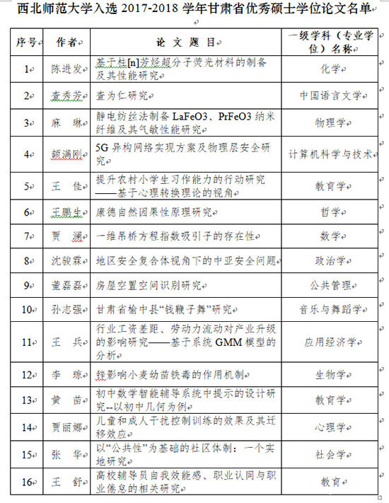西北师大23篇论文入选甘肃省优秀博士硕士学位论文