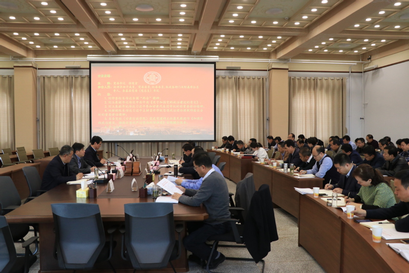 张俊宗书记作学习总结。他指出,刘仲奎校长对2019年全国“两会”精神的传达,使我们对全国“两会”精神特别是国家关于教育的安排部署有了更加深入、全面的了解和把握,使我们对新时代高等教育发展方向和目标更精准、方向更精确。