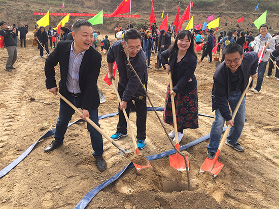 4月20日上午,甘肃欧美同学会组织“庆祝新中国成立70周年暨推进临洮实践服务基地建设”留学报国林植树活动,西北师大9名归国留学教师代表赴临洮县辛店镇白李袁村参加植树活动。