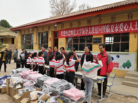 5月31日,西北师大副校长董晨钟带领教务处、社会合作服务处、美术学院干部一行5人,赴东乡族自治县春台乡李马家小学、龙泉乡那楞沟小学开展支教检查暨临夏市爱心人士捐助活动。