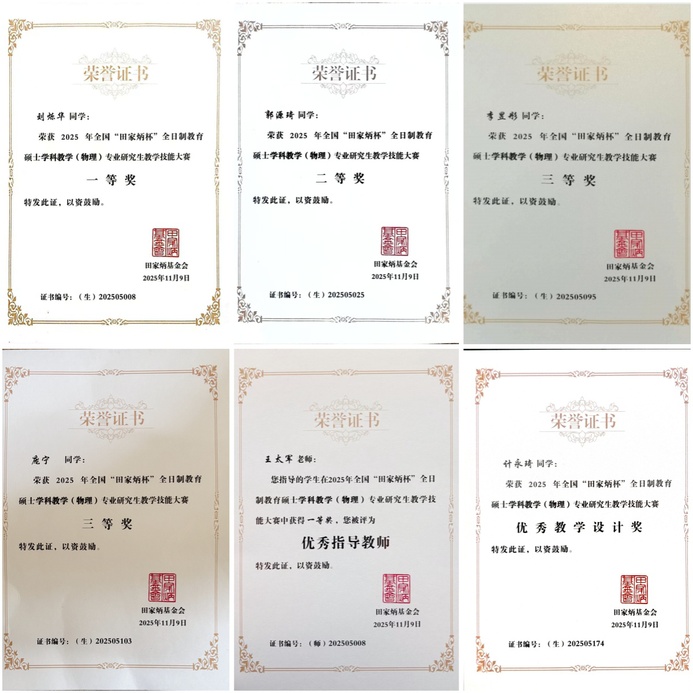 116日至9日,由全国教育硕士专业学位研究生教学技能大赛专家委员会指导、华南师范大学主办的2025年全国 田家炳杯学科教学(物理)专业研究生教学技能大赛决赛暨全国学科教学物理专业研究生人才培养研讨会在广州。日韩人妻无码一区二区三区久久99_日韩精品一区二区三区中文在线_无码日韩精品一区二区免费_久久久91精品国产一区二区三区_亚洲精品久久久一区黄无码_国产91精品一区二区麻豆网站_成人国内精品久久久久影院代表队在本次比赛中表现优异,共获得一等奖1项、二等奖1项、三等奖2项,并获得优秀教学设计奖优秀指导教师。