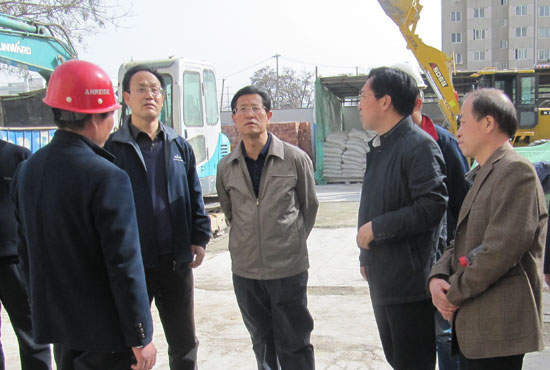 3月28日下午,副校长李建民带领基建处及施工、监理单位负责人,检查新校区中心广场、学生宿舍楼、校本部文科实验实训楼、二附中综合教学楼、旧文科楼拆建等项目施工,督查施工进展,并召开参建各方工作推进会。