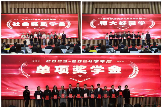 会上,贾宁为新成立机构、新增学位点授牌,并为“人才科研项目奖”获奖代表颁奖;王占仁为“团体荣誉奖”获得团体代表颁奖;王全进宣读授牌机构和通报表扬、表彰奖励名单,并为2024年度“优秀班主任”获奖教师代表颁奖;焦爱胜为2024年度“十佳辅导员”颁奖;王文昇为2023-2024学年度“国家奖学金”本硕博获奖学生代表颁奖;赵鑫为2023-2024学年度“校长奖学金”获奖学生颁奖;周琳辉为2023-2024学年度“各类单项奖学金”获奖学生代表颁奖;马世年为2023-2024学年度“社会奖助学金”获奖学生代表颁奖;阎岩为2024年度“师大好同学”获奖学生代表颁奖。