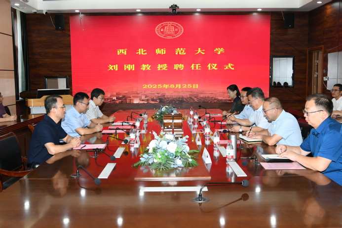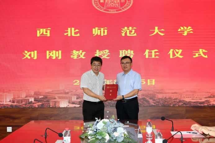 8月25日上午,西北师大举办聘任北京大学刘刚教授为我校特聘教授聘任仪式。副校长马利邦出席仪式并为刘刚教授颁发聘书。学校人事处、地环学院相关负责人以及教师代表50余人参加。